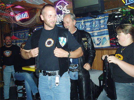 In October, 2004, the Blue Knights WI IX was awarded our charter. The charter was presented to our president by Gene King, the Blue Knights Wisconsin GLRC representative. Present to award our new colors was Dane Nelson, the president of the Blue Knights WI X - Green Bay. Also present were other members from the Green Bay chapter and the Secretary of the Milwaukee chapter WI VI, Tina Chappell.